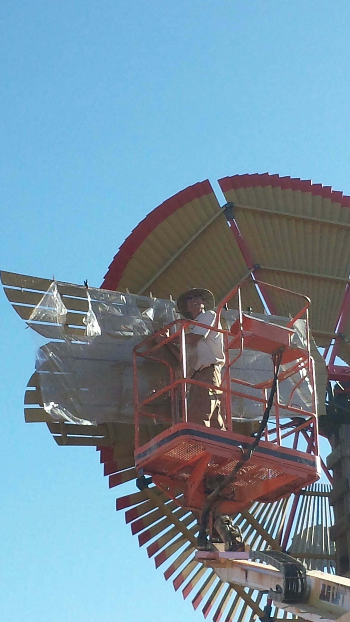Vernon from Oklahoma and Eddie from Texas were part of crew who built a new tail for the 18 Railroad Eclipse windmill.